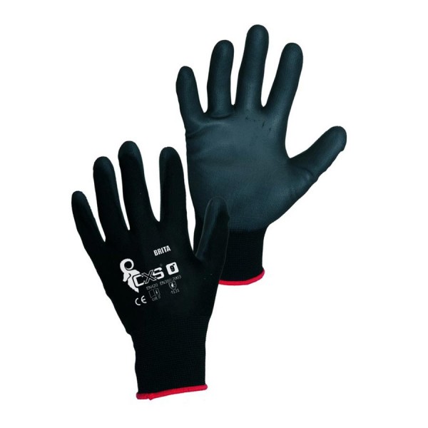 Pracovné rukavice BRITA máčané v polyuretáne - čierne