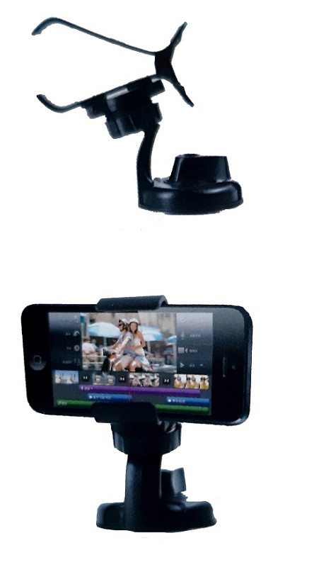 Multifunkčný držiak na mobilný telefón a navigáciu do auta, určený k uchyteniu na palubnú dosku alebo čelné sklo auta s veľmi silnou prísavkou.