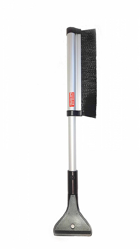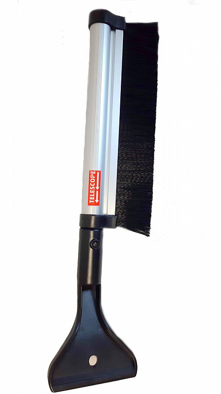 Kompaktná hliníková kefa je vybavená škrabkou na ľad.