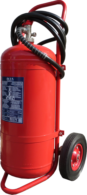 Pojazdný práškový hasiaci prístroj 50 kg je zaujímavý hlavne väčším obsahom hasiaceho prostriedku.